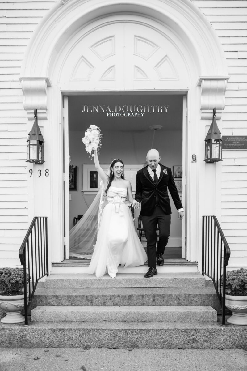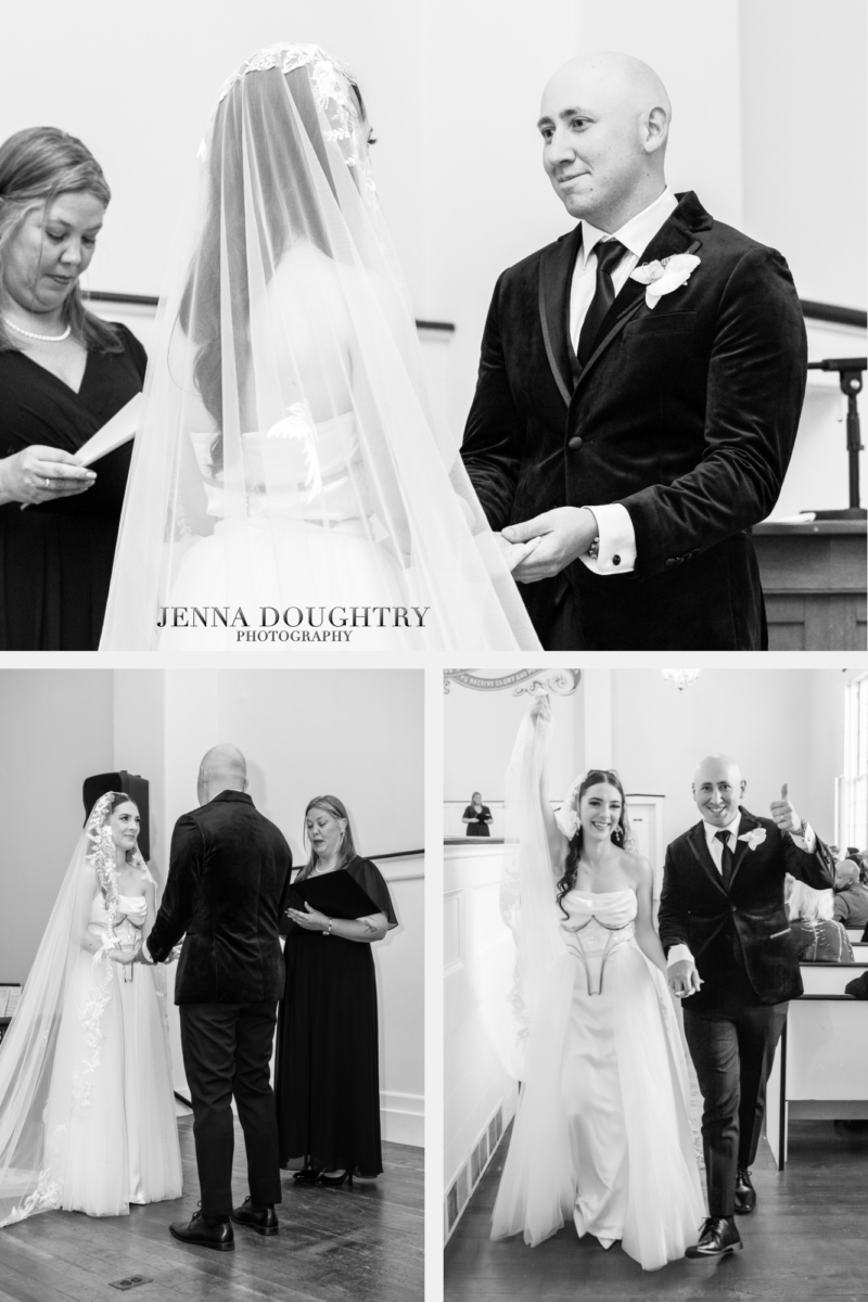Margaret and Tommy exchanged vows at the Historic 1862 Meetinghouse at the Historical Society of Wells and Ogunquit. This light-filled New England venue photographs beautifully in every season. The historic architecture and tall windows created an intimate setting for their heartfelt ceremony.