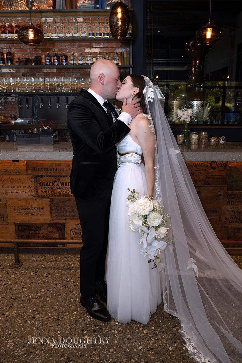 After the ceremony, guests gathered at Wild Bevy Distilling in Wells for a relaxed reception. The tasting room created an intimate setting that felt personal and welcoming.